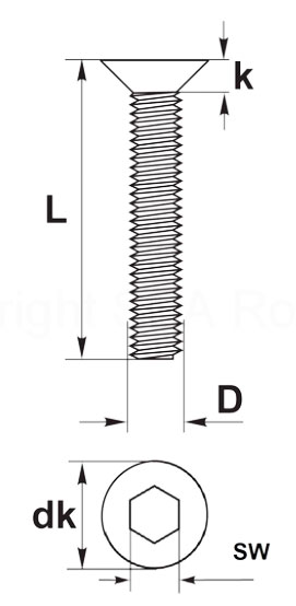 Surub DIN 7991 cu cap inecat, cu hexagon interior / imbus.
