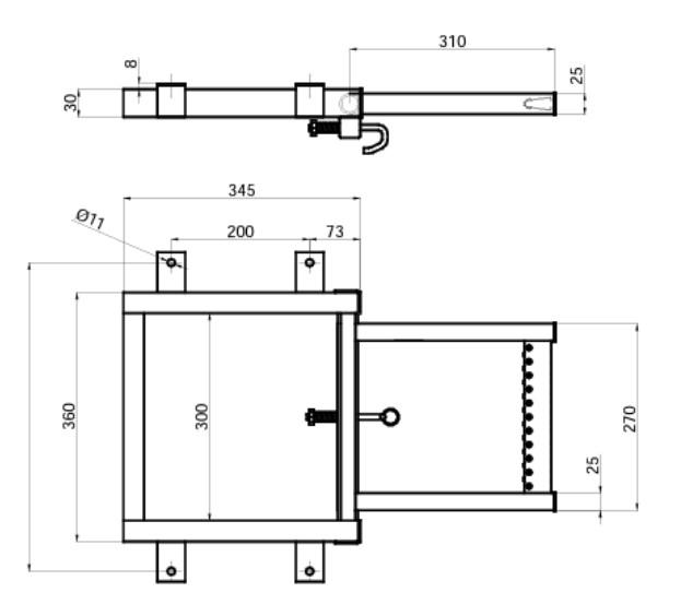 Scara oblon metalica pliabila cu patru urechi de prindere, cu o treapta si carlig de prindere, de siguranta, din otel zincat.